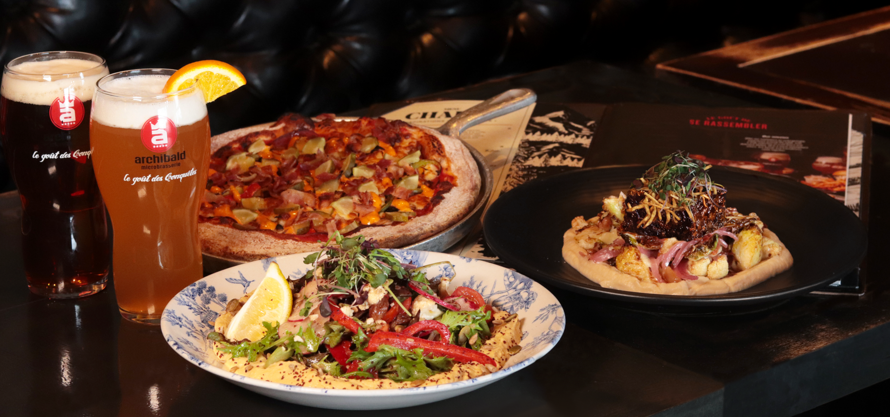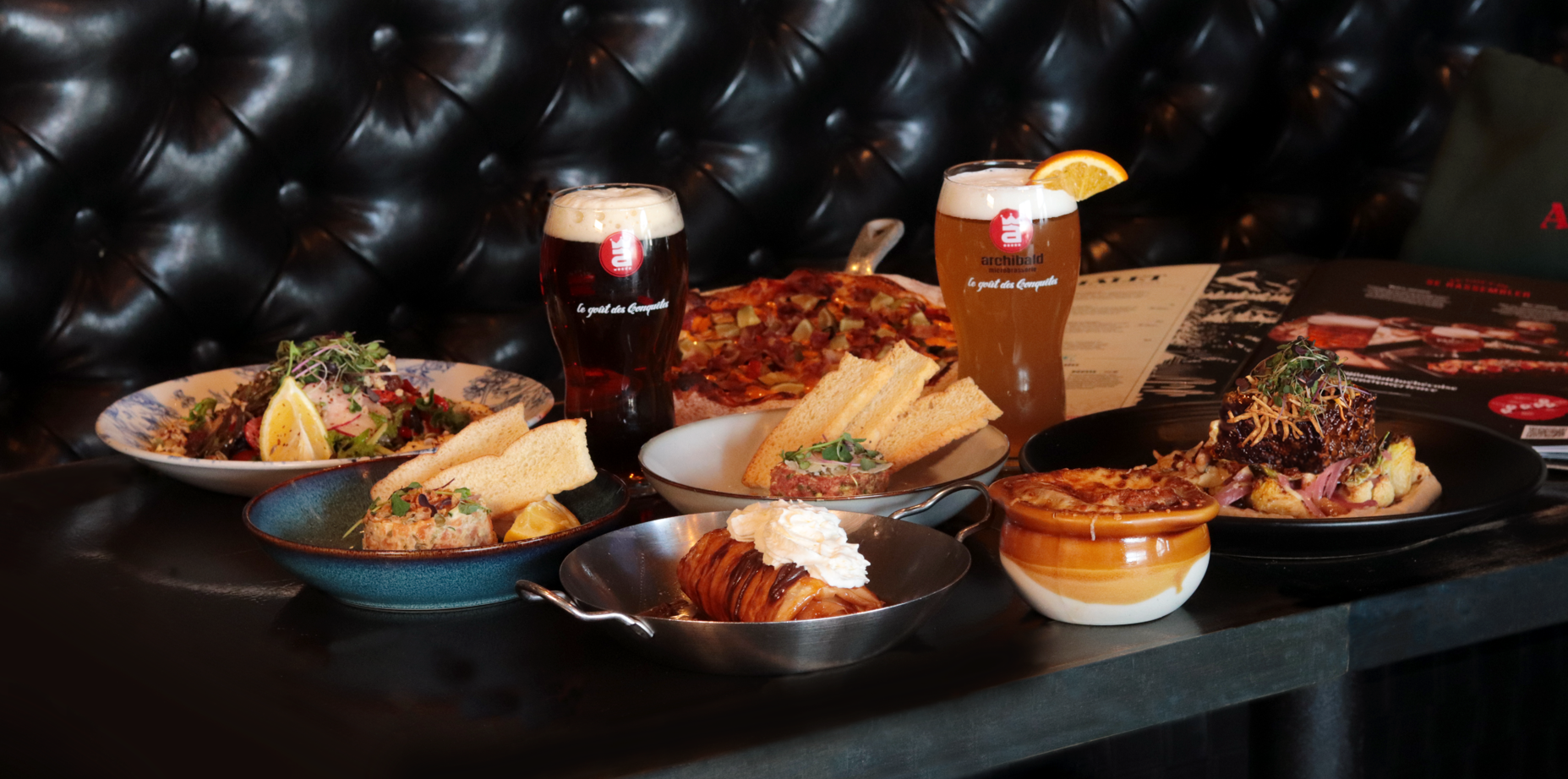 The $49.99 package includes two meals and two drinks, with a choice of dishes such as house-made blood sausage, the Archibald pizza, or the hummus salad, paired with a selected glass of red or white wine or a pint of your choice.